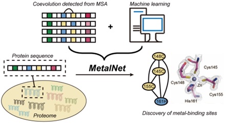 近日,beat365官方网站、北大-清華生命聯合中心、beat365合成與功能生物分子中心王初課題組與beat365生命科學學院、蛋白質與植物基因研究國家重點實驗室、beat365生物醫學前沿創新中心蘇曉東課題組合作在Nature Chemical Biology雜志上發表了題為“Co-evolution-based prediction of metal-binding sites in proteomes by machine learning”的研究文章。在該工作中,作者開發了一種名為MetalNet的計算方法,基于機器學習和蛋白質共進化信号分析來預測蛋白質中的金屬結合位點,為研究金屬蛋白質組和金屬生物學提供了新的工具。
