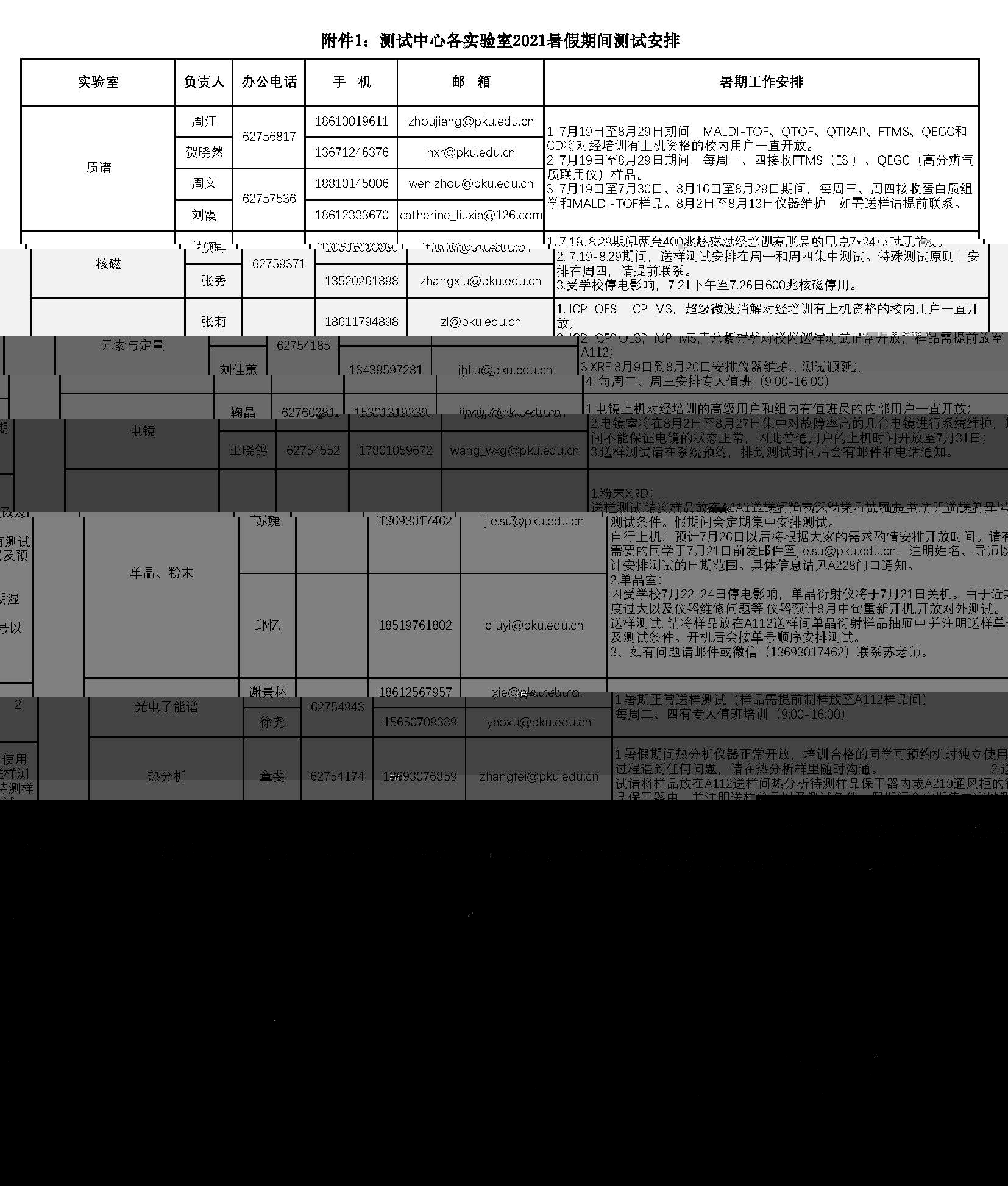 根據學校暑假有關通知,7月19日至8月29日全體教職工輪休,結合教學科研工作具體情況,暑假期間分析測試中心工作安排如下: